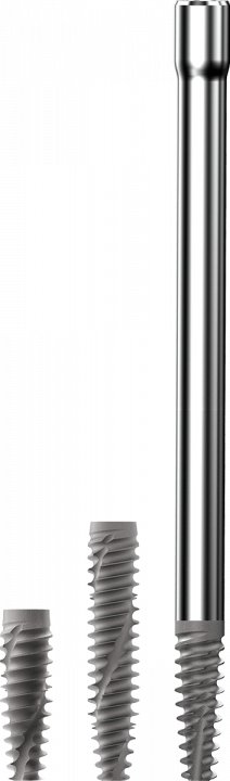 Implantes de 28 a 60 mm de Altura: Varias longitudes para adaptarse a diferentes grados de atrofia maxilar.